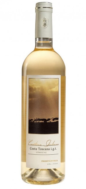 Cantina Giuiliano's Costa Toscana Vermentino is made from 100% Vermentino grapes. The wine is a beautiful golden straw color with a bold aromatic nose with a pleasant floral bouquet and ripe fruit. The taste reveals flavors of white peach, pineapple, and guava. The wine is light and very drinkable, with lasting acidity and pleasant finish.